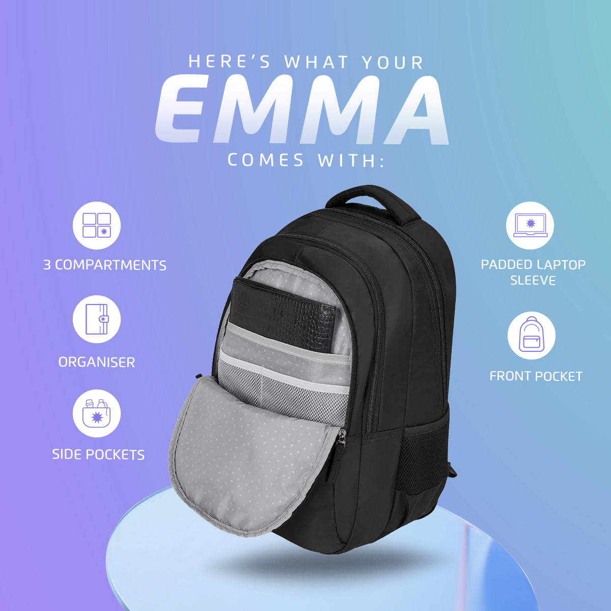Genie Emma 36L Black Laptop Backpack