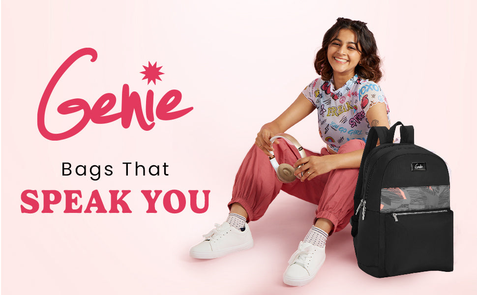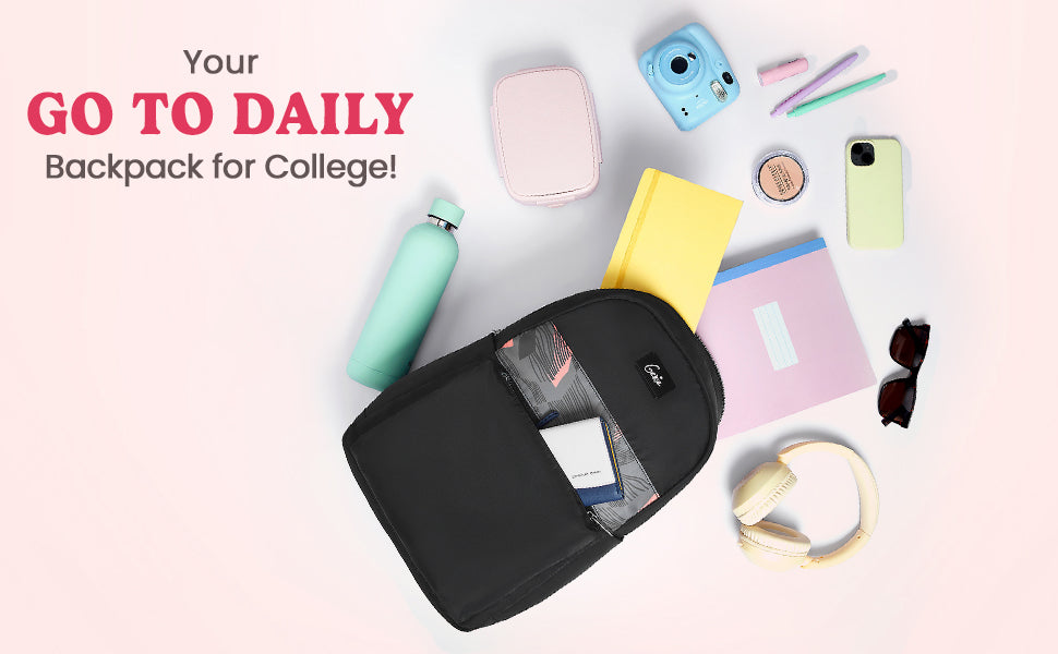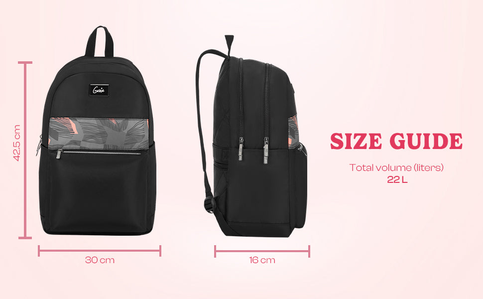 Genie Esme 22L Black College Backpack With Laptop Sleeve