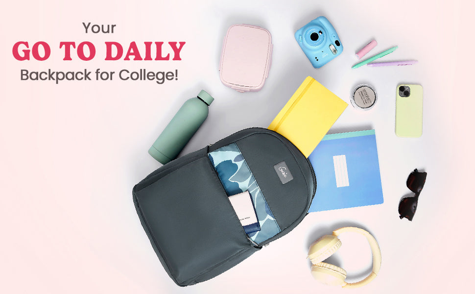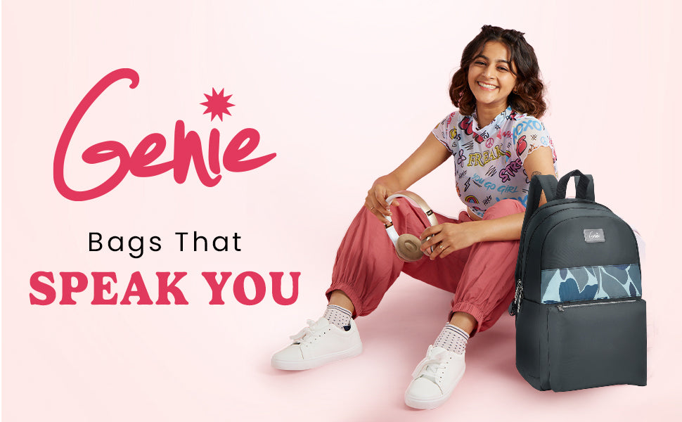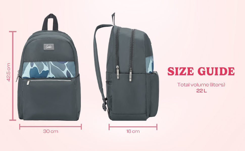 Genie Tiffany 22L Charcoal Black College Backpack With Laptop Sleeve