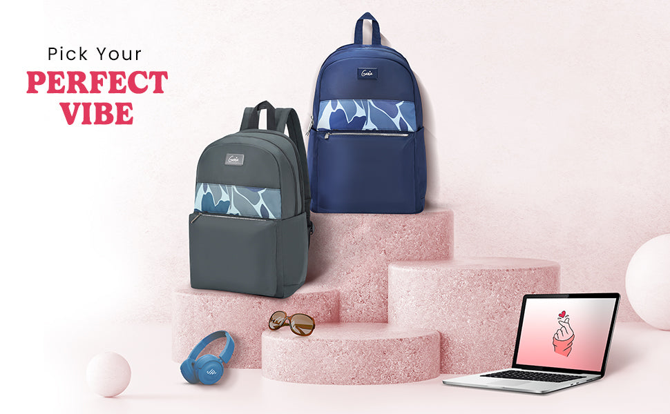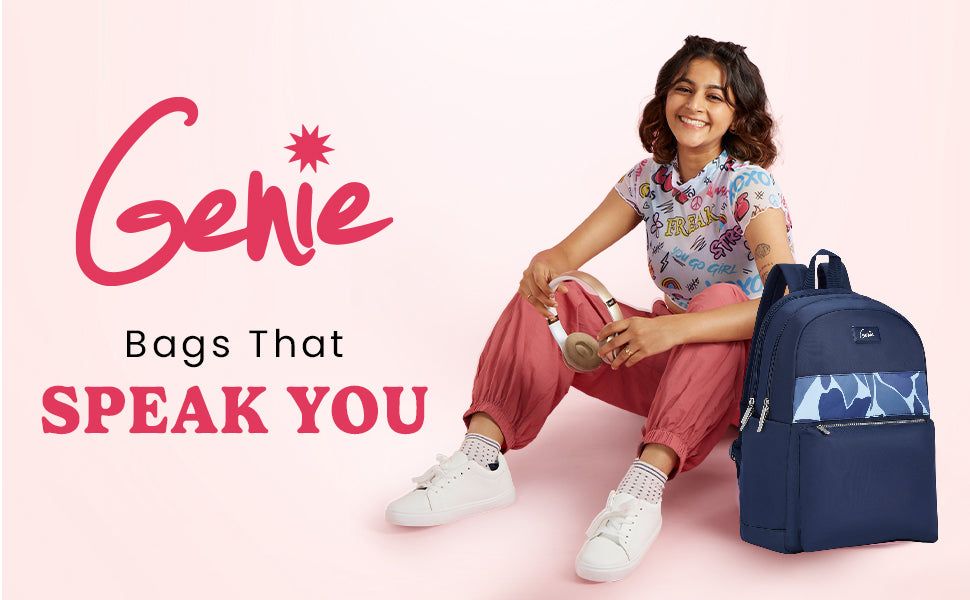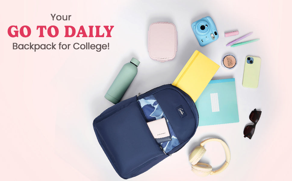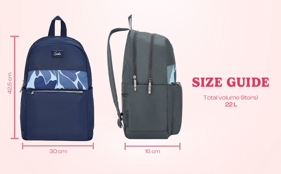 Genie Tiffany 22L Navy Blue College Backpack With Laptop Sleeve